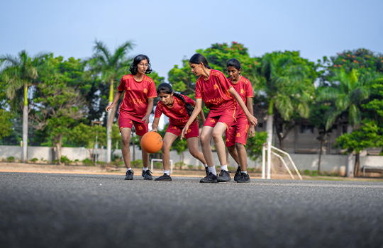 Basket ball, an excellent social sport that builds endurance, improves balance and coordination, develops concentration and self-discipline and builds up muscle has rightly been added into the list of sports offered at our school. The school has a magnificent court offering students a masterly platform to hone their basket ball skills. Top-notch training in shooting, dribbling, defending, rebounding and passing are provided to manoeuvre through the game.