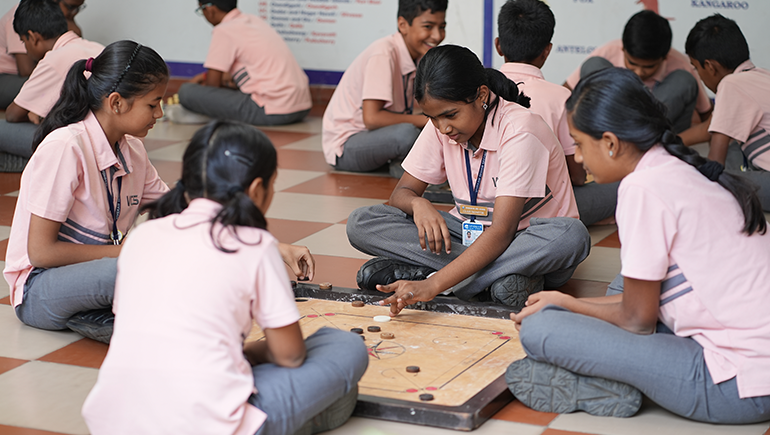 Carrom, a game of precision, strategy, and skillful maneuvering, has captivated children always. It is the most fascinating target game offered as a major choice of indoor game played by children. They learn and play by the rules. The school organizes inter-house carom board games to provide opportunity for the skills to be showcased.